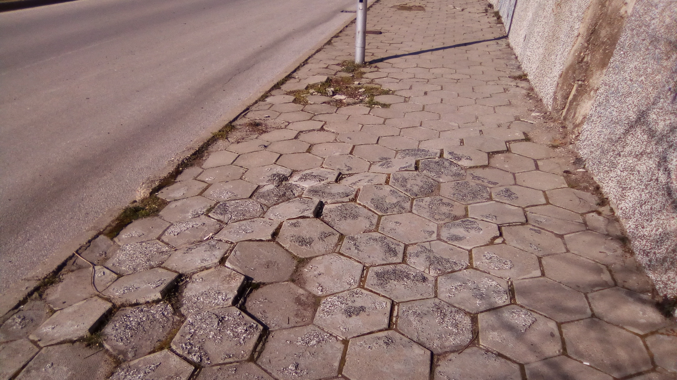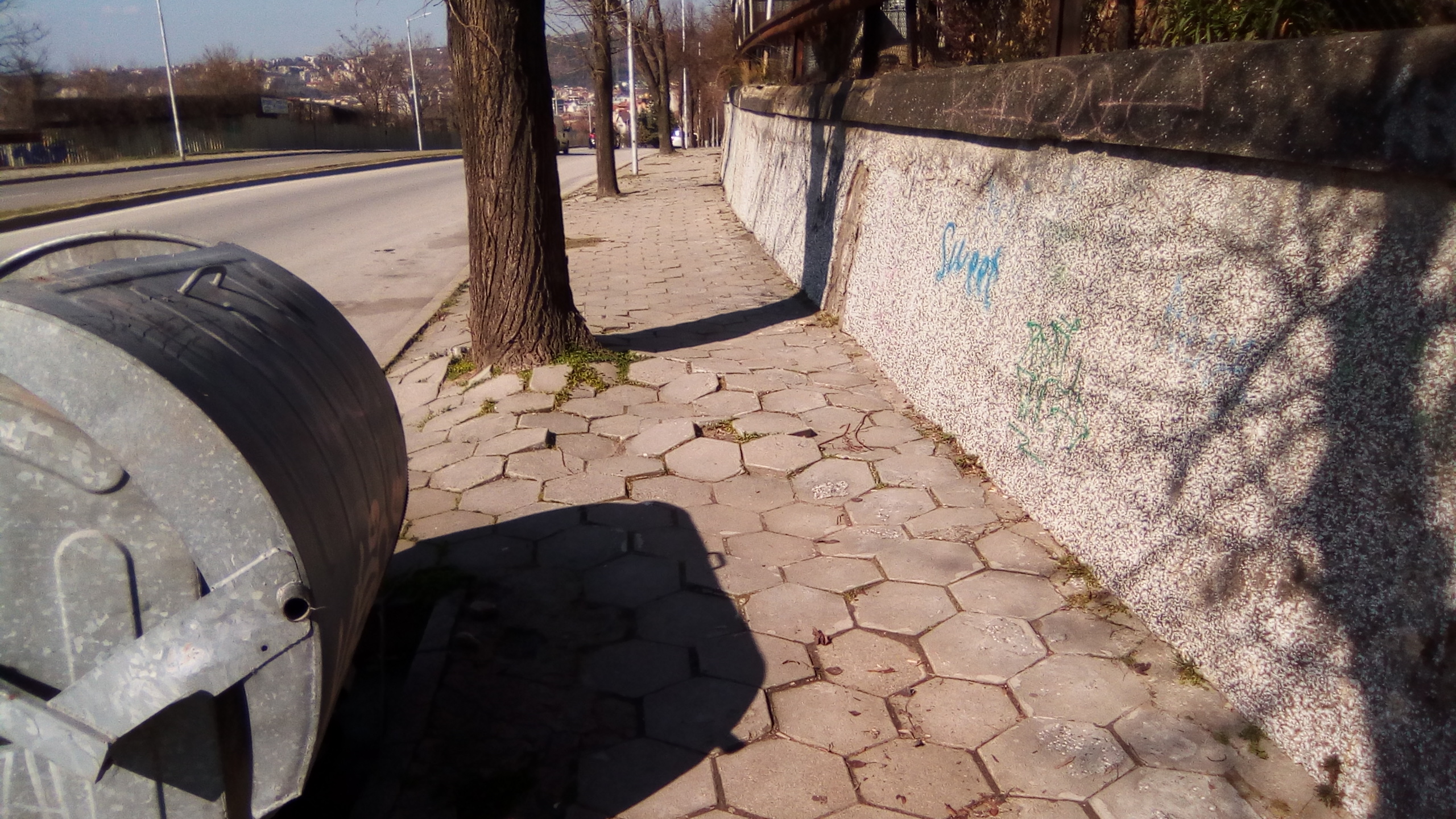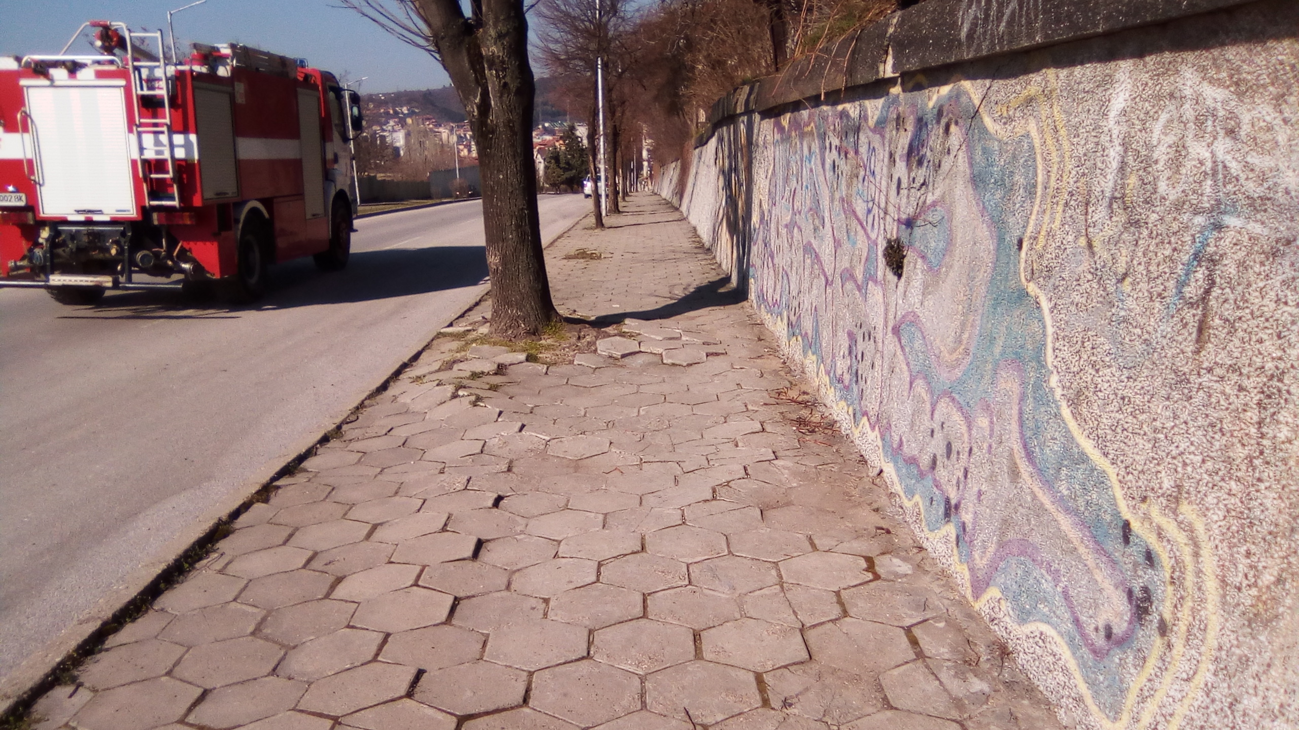 Сигнализирам за тротоарната настилка по улицата, която върви срещу казармите. Започва от ул. "Акациите", която по-надолу е "Полк. Дрангов" и по-надолу вече е "14 полк", но е един тротоарът. На снимките показвам как при дърветата плочките са разместени и човек трябва да се изкачва по тях. Това е на почти всяко дърво. Обходете цялата отсечка, защото са много такива повреди по тротоара. 2. Втори проблем, който забелязах на ул. "Акациите" 11 ще видите метални стъпала, които са монтирани на бетонова основа, като не се знае на частен имот или на общински са. Проблемът с тях е, че тези стъпала взимат от пространството за пешеходци по тротоара, което е допълнителен дискомфорт и стеснява тротоара.