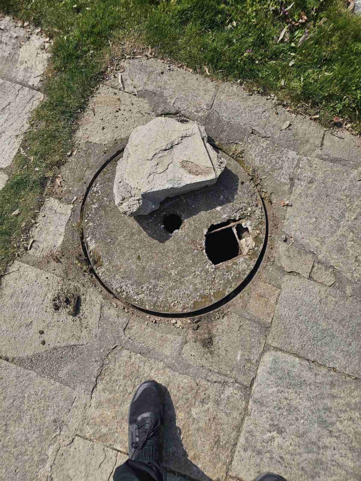 Моля капакът да бъде подменен спешно, тъй като създава риск за преминаващите.