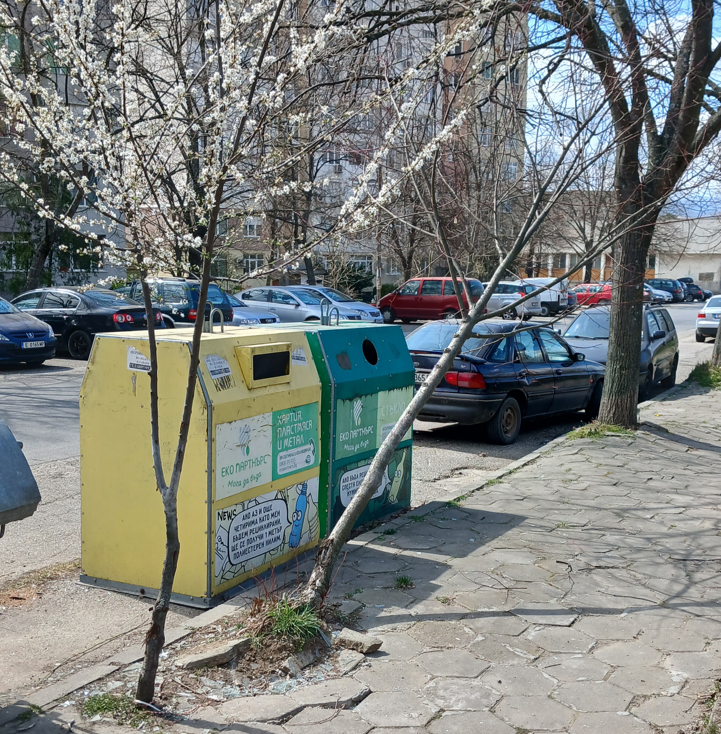 До контейнерите при блоковете в Грамада има почти напълно изкоренено младо дърво.