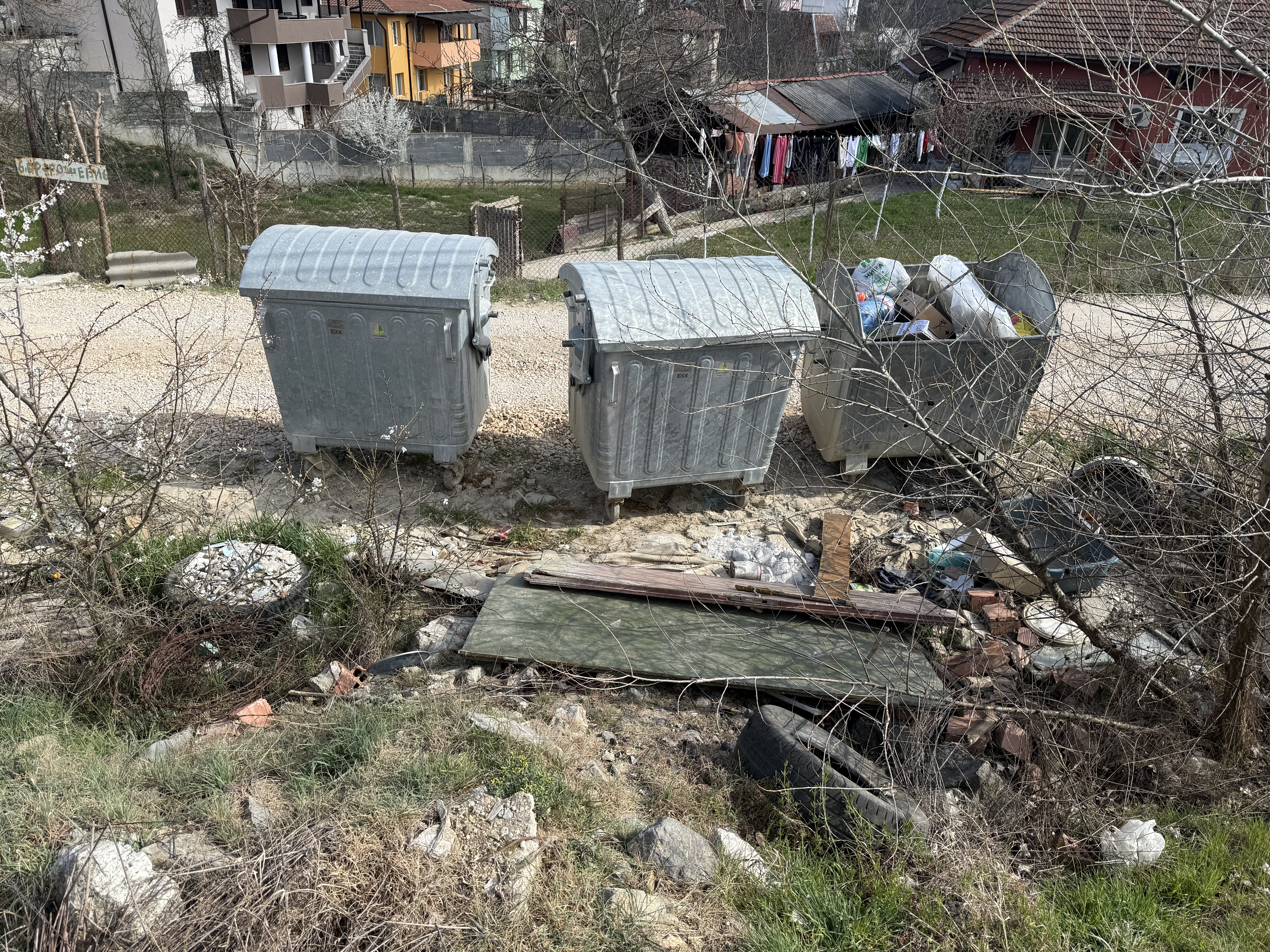 Зад контекнерите за смет има едрогабаритни боклуци, които пречат на кофите за боклук. Малко по малко кофите застават почти до средата на улицата (ако изобщо може да се нарече улица). Моля за извозване на този отпадък, за да могат кофите да се дръпнат назад. Благодаря,