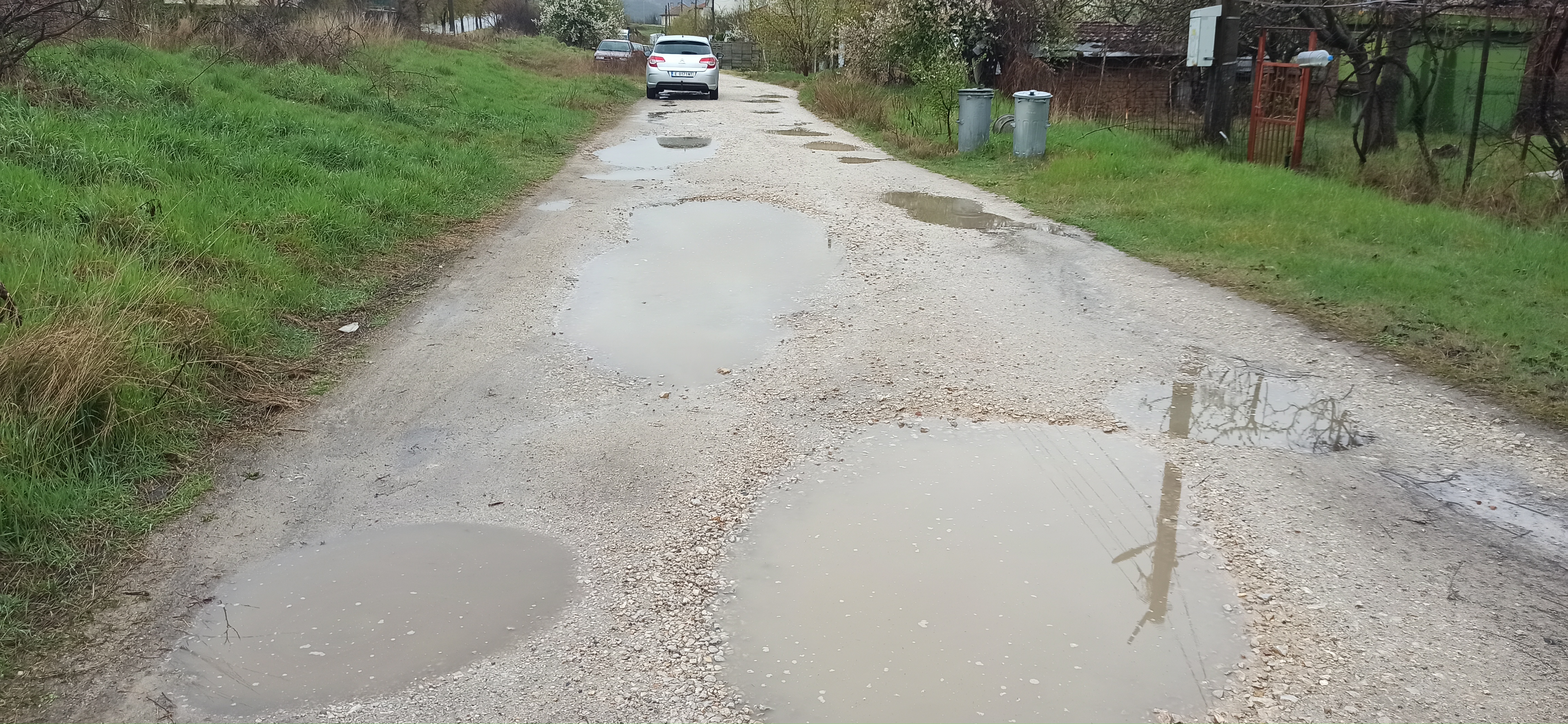 Цялата улица, която е на земна основа,е с огромни дупки, или по-точно кратери след бомбардировка, няма здраво място по което да се премине с автомобил! Плащаме си данъците за да си трошим колите движейки се по нещото, записано в документите на общината като улица!!! Да се настеле цялата отсечка с фрезован асфалт или с трошен камък, известен още като макадам!!!