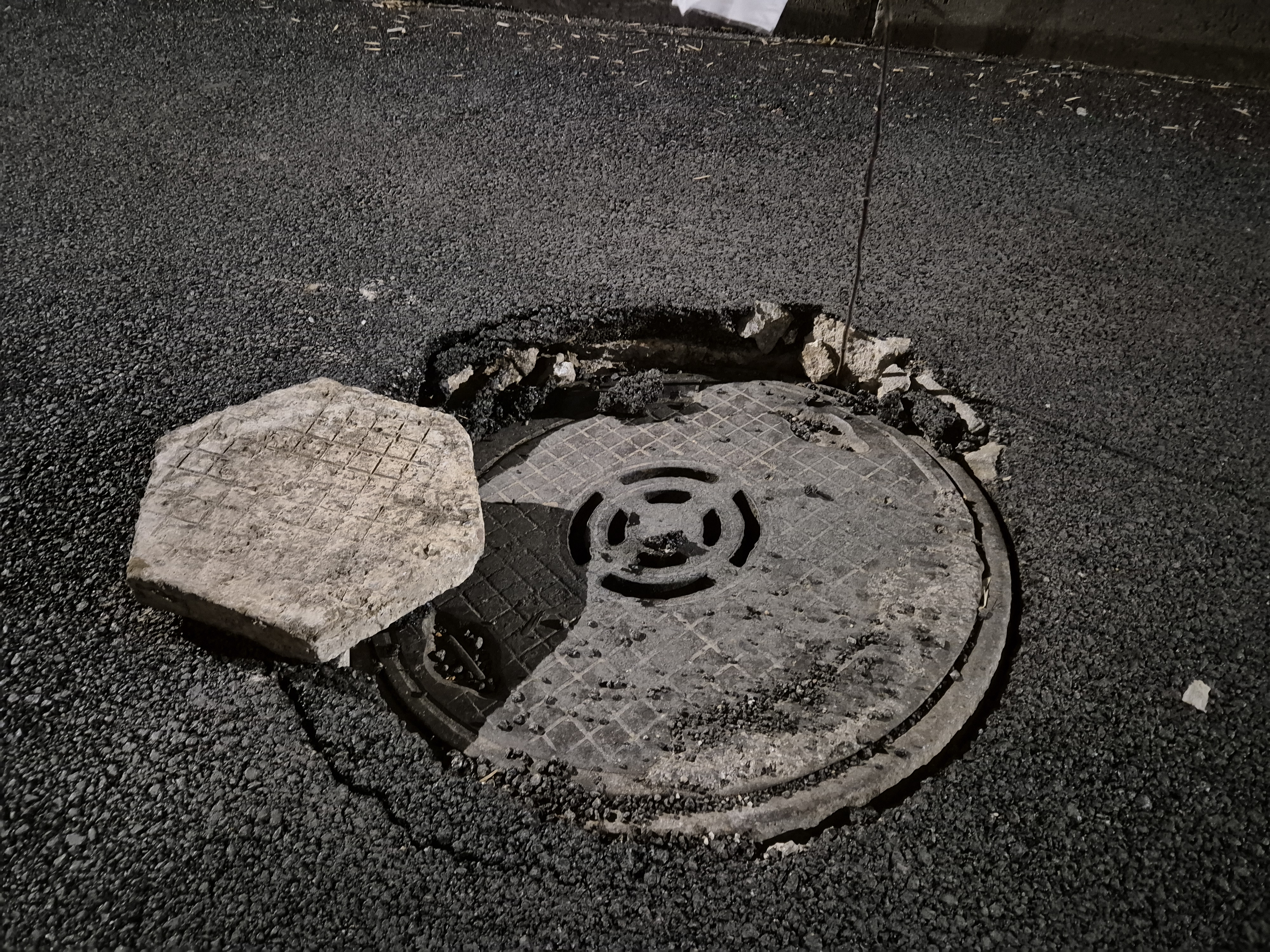 На 4/5ти март 2026г., бе подменена асфалтова настилка, на улицата пред бл.: 6Б, 6А, 7Б, 7А, 8 в ж.к. Еленово. За съжаление, преди два дни видяхме, че ремонтът около канализационната шахта пред бл.6, вх. А не е съвсем качествен и шахтата бе пропаднала. От снимките се вижда, че след премахването на старата настилка шахтата си е в перфектно състояние. При снимките, след пропадането на шахтата, личи, че около шахтата, незнайно защо е сложен пълнеж, който не е имало как да издържи на натоварването. На снимките, също така се вижда и опитът за ремонт на ремонта, на въпросната шахта, който явно се е случил в късните следобедни часове на днешния ден, тъй като положената смес, към 20:00ч. днес бе съвсем прясна.