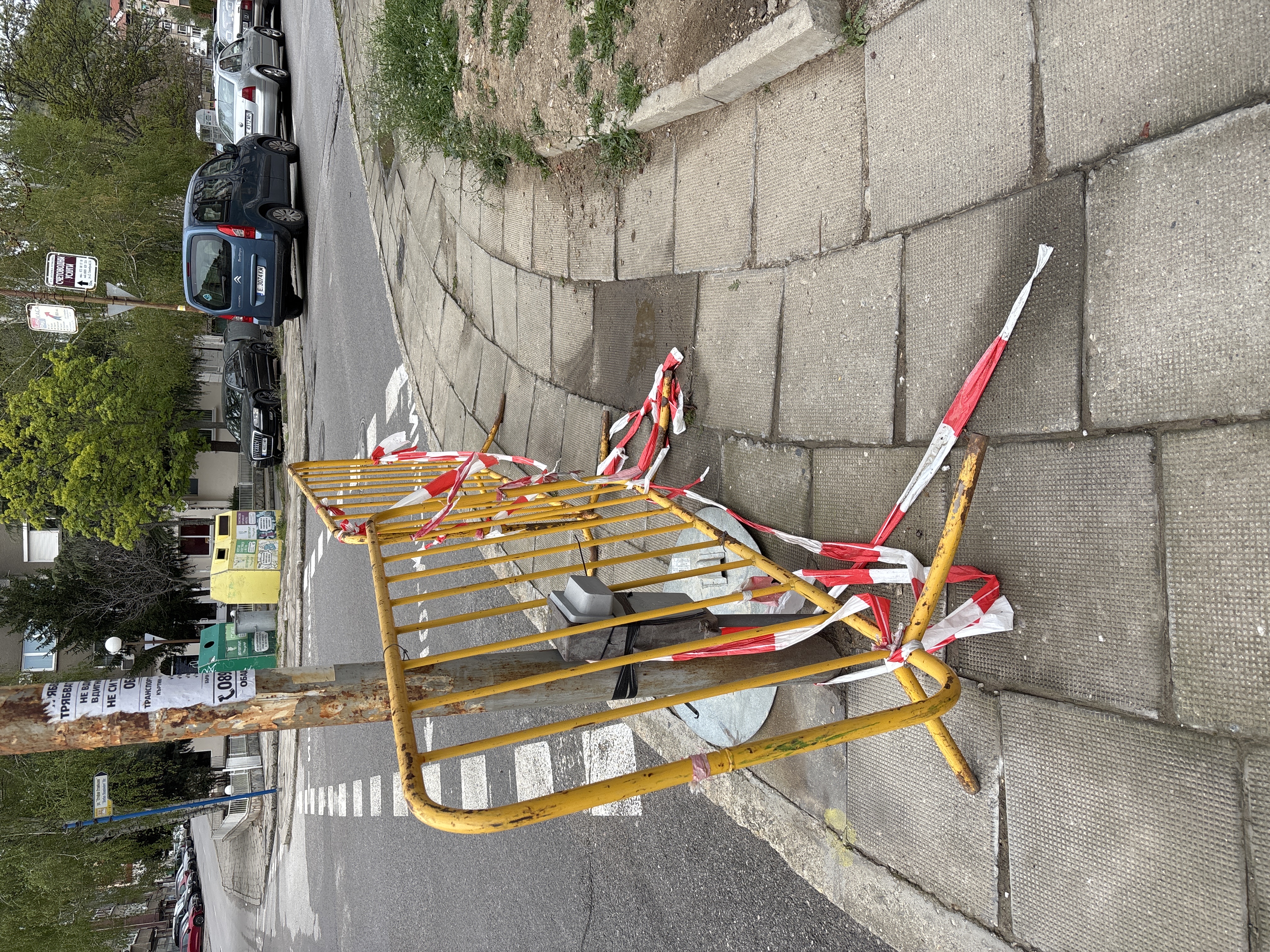 След ремонт на ул. Ст. Стамболов са оставени заграждения, които пречат на преминаването на пешеходците по тротроара.