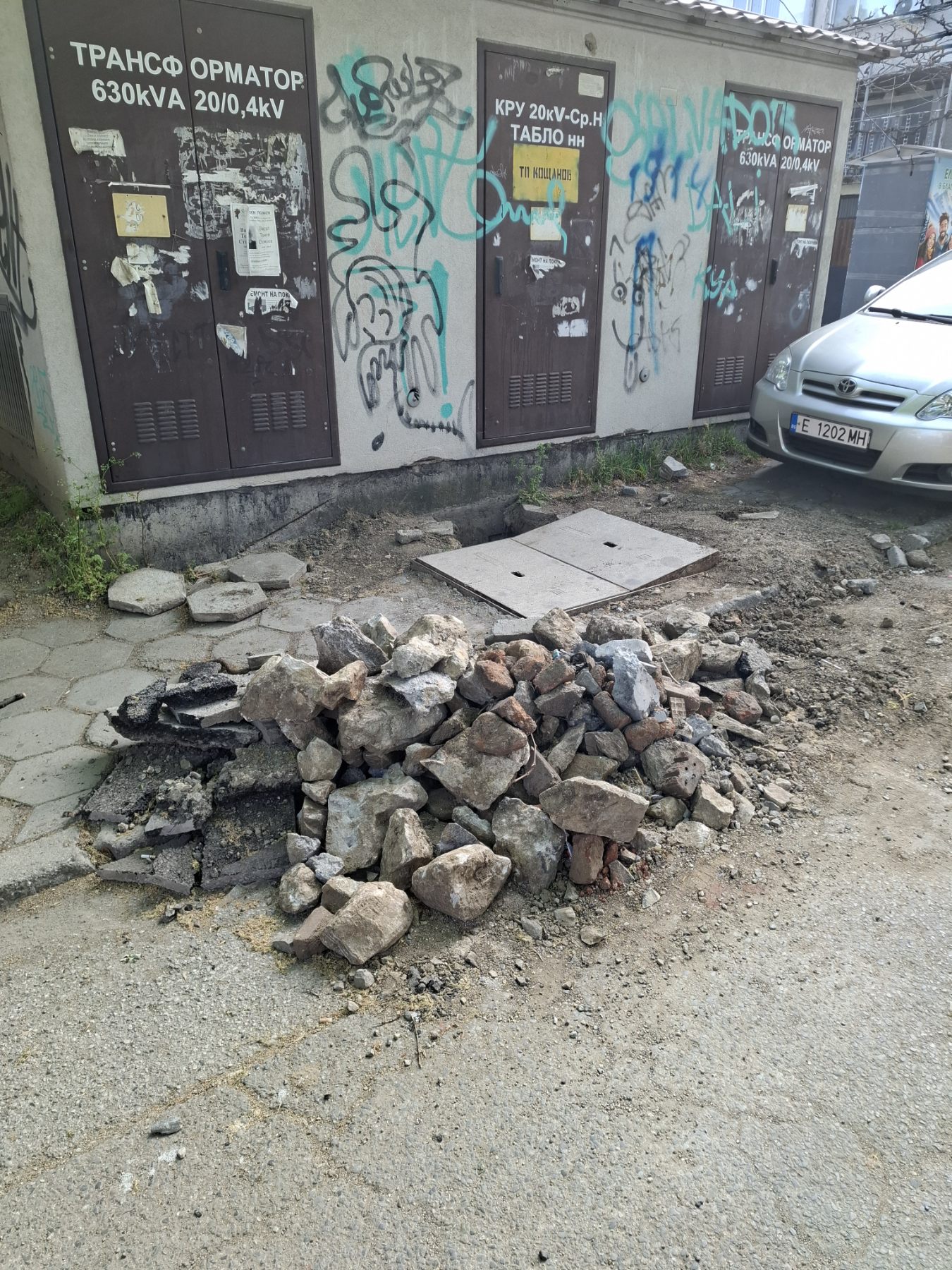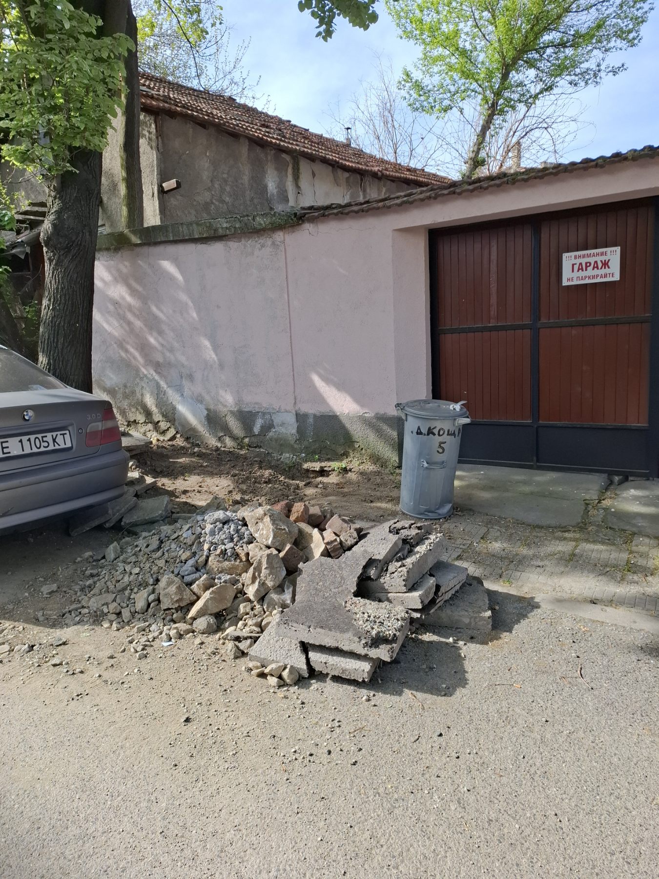 От хора, които извършваха ремонт, са оставени отпадъци пред гаража ми и не мога да извадя автомобила си. Моля да бъдат предприети необходимите действия.