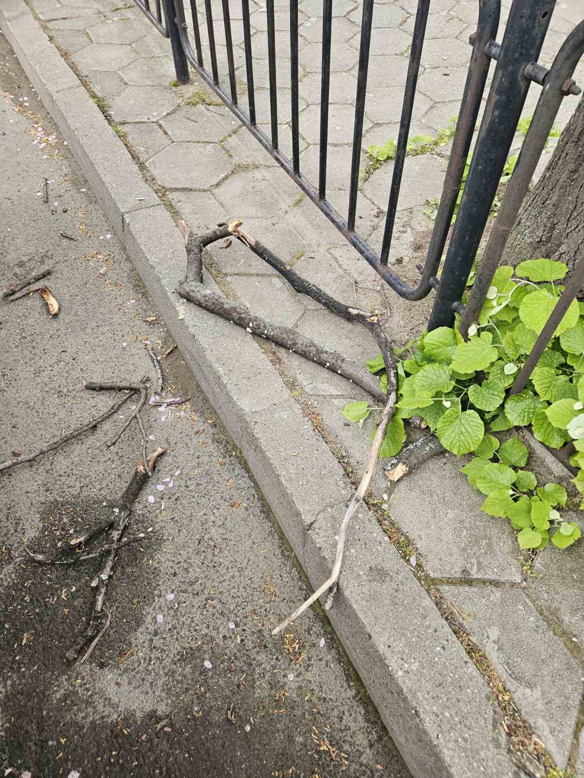 На автобусната спирка при Професионалната гимназия „Ичко Бойчев“ изсъхнал клон падна върху автомобила ми. В короната на дървото има още изсъхнали клони. Моля да бъде извършена проверка и да се предприемат необходимите мерки.